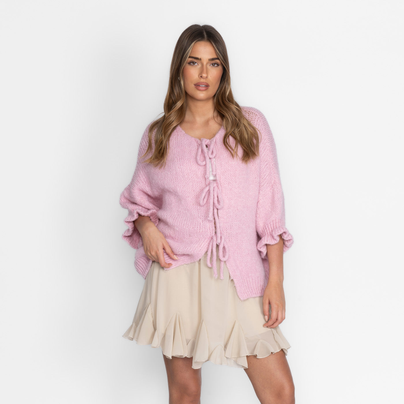 Oversized Tulip Cardigan mit Schleifen - JEWELINA