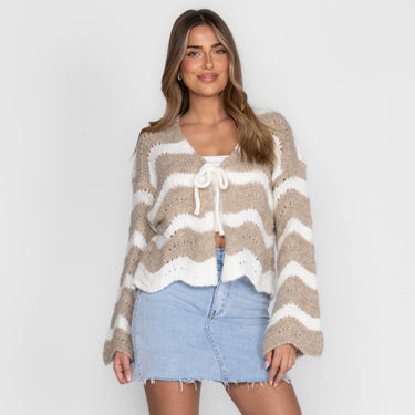 A touch of lightness – the Soft Wave Cardigan is made for gentle summer days. Delicate wave structures, a feminine bow detail, and the airy, short fit give it a playful yet elegant look. The soft knit quality hugs comfortably and makes it the perfect layering piece for warm afternoons and balmy evenings.