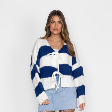 Add color to your wardrobe with our striped bow cardigan with V-neck !