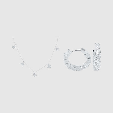 Fantastisch funkelnde und schimmernde Schmetterlinge vervollständigen deinen Look. Kombiniert mit einzigartigen, von innen und außen mit Zirkoniasteinen besetzten Celia Kreolen ist dieses Set ideal für den Alltagsoutfit oder auch besonderen Anlass.