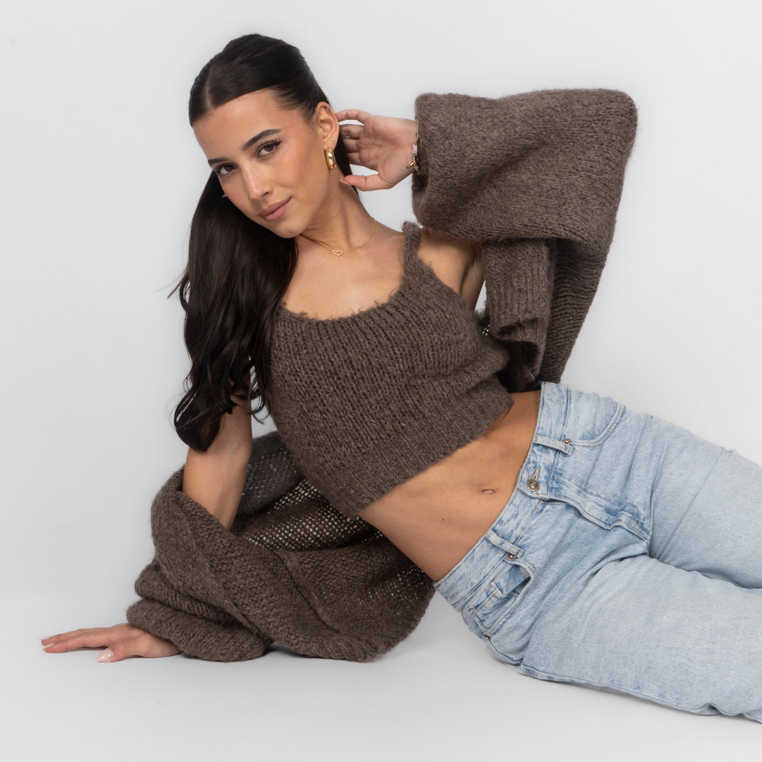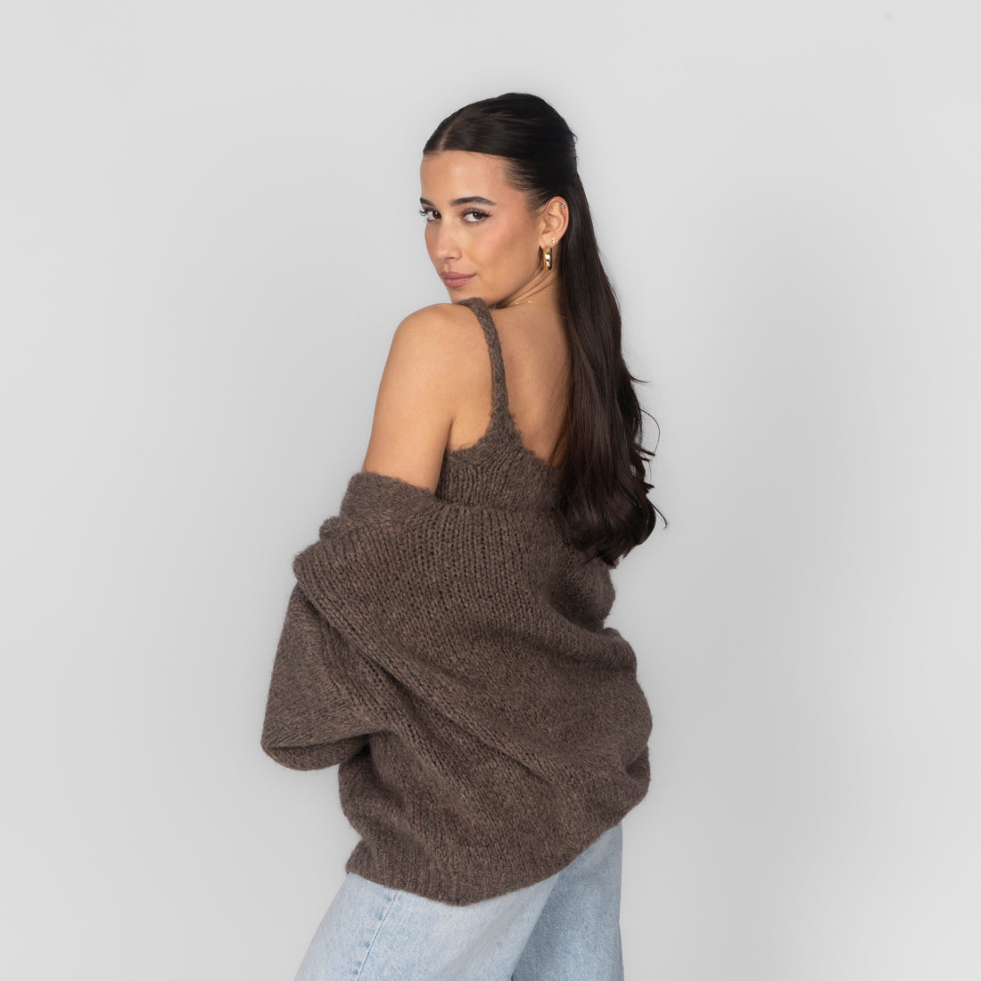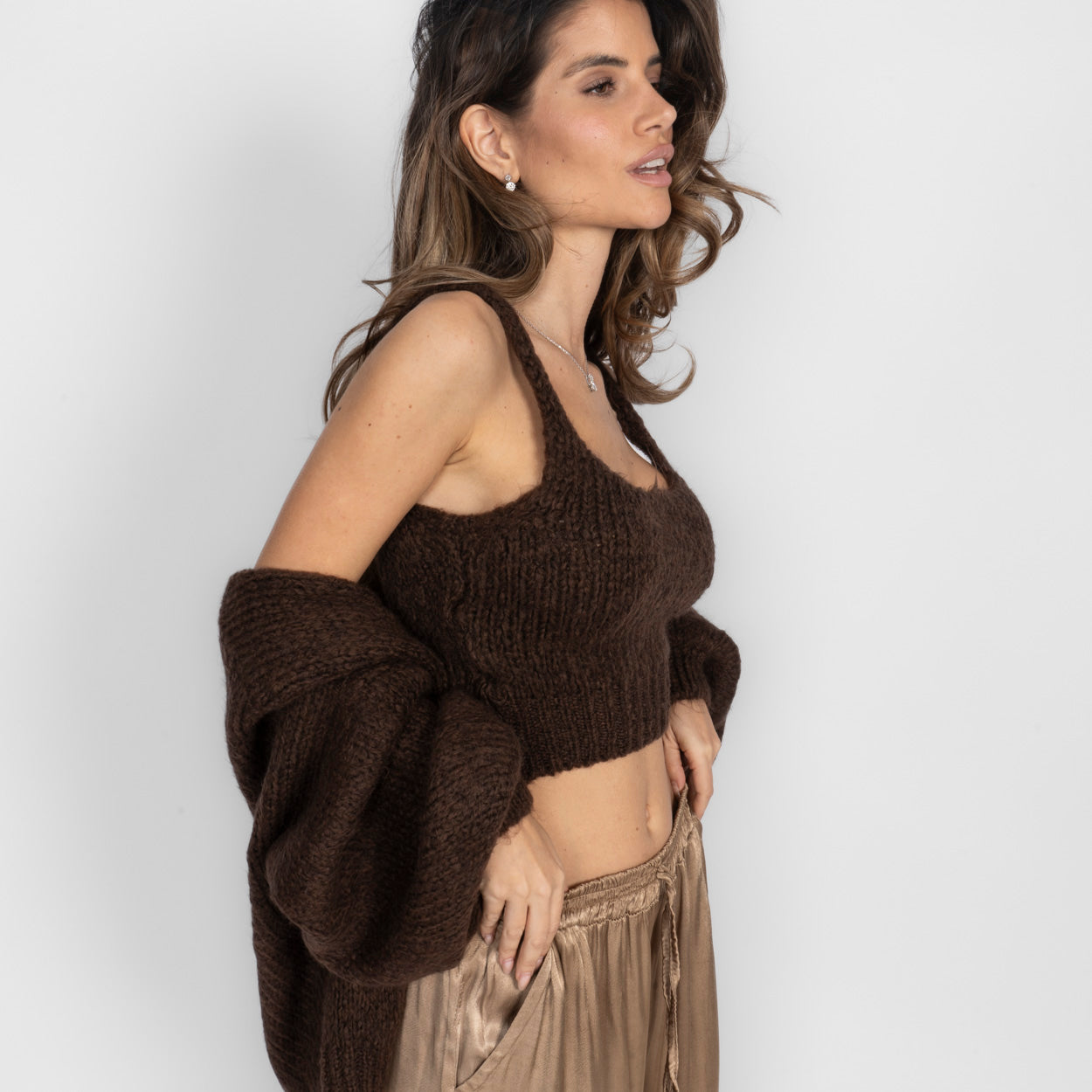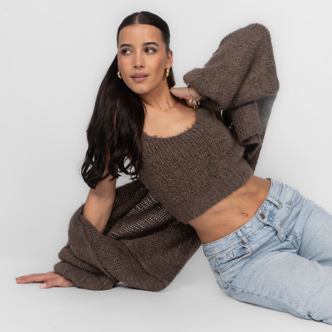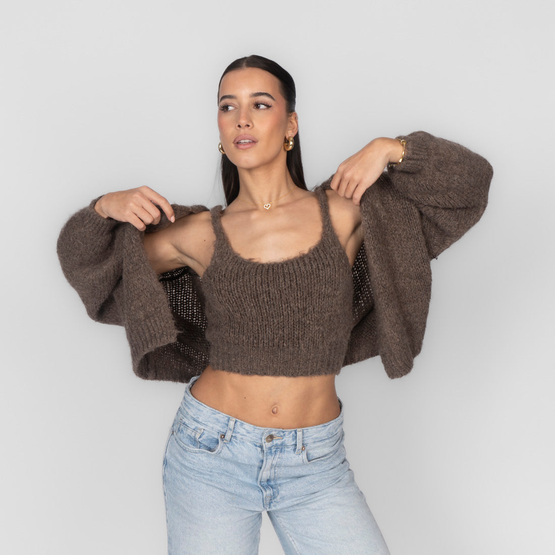 Unser Cozy Strick-Zweiteiler ist die perfekte Kombination aus Komfort und Stil. Das Set besteht aus einem weichen, figurbetonten Cropped-Top mit zarten Trägern und einem passenden Cardigan, der locker darüber fällt und den Look harmonisch abrundet.