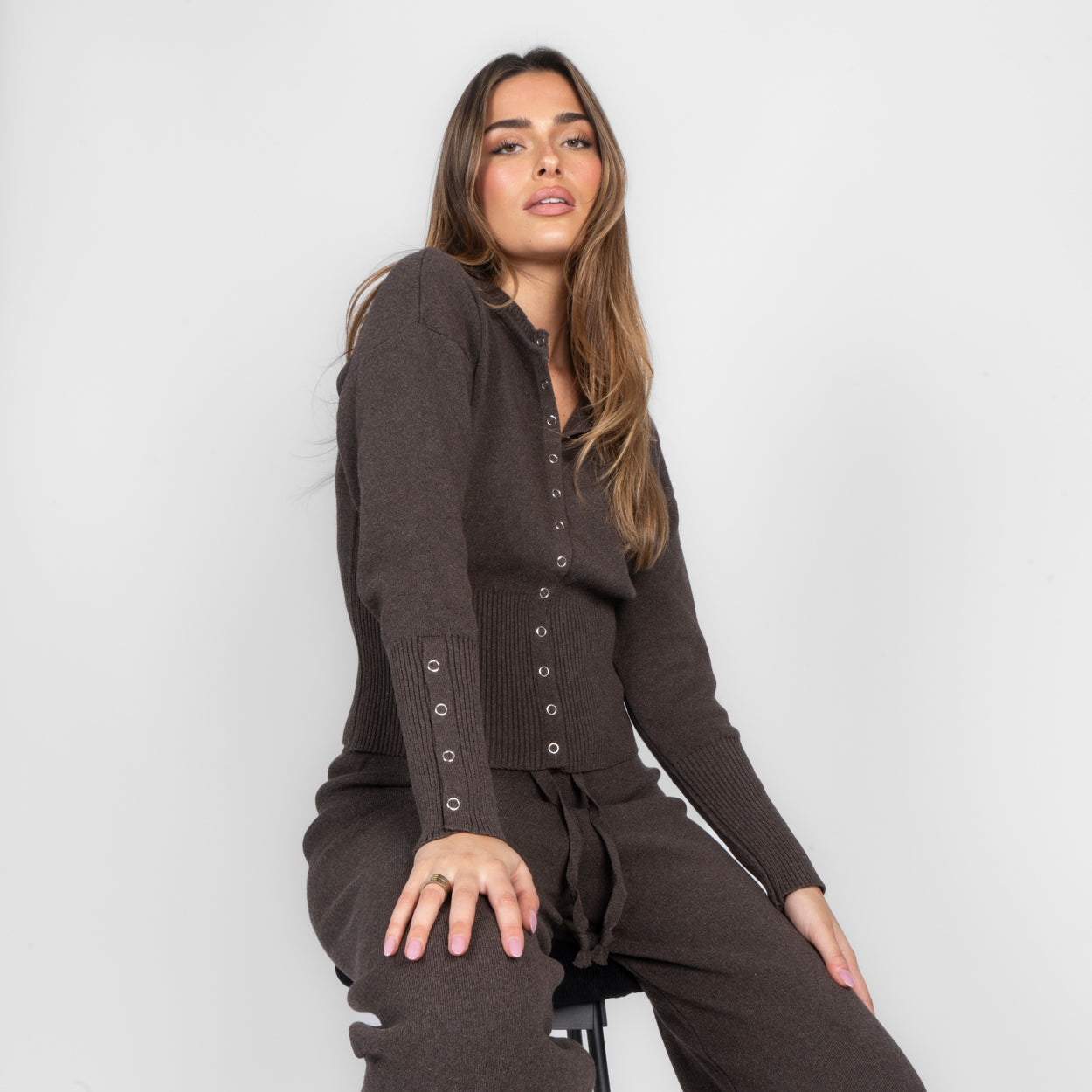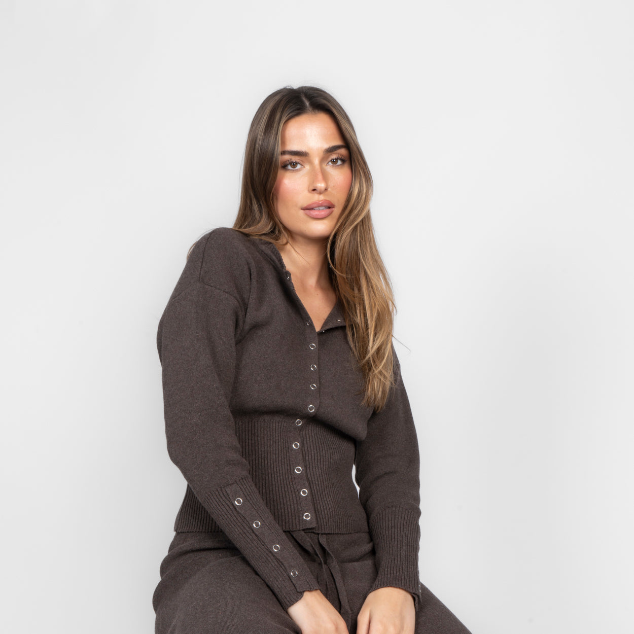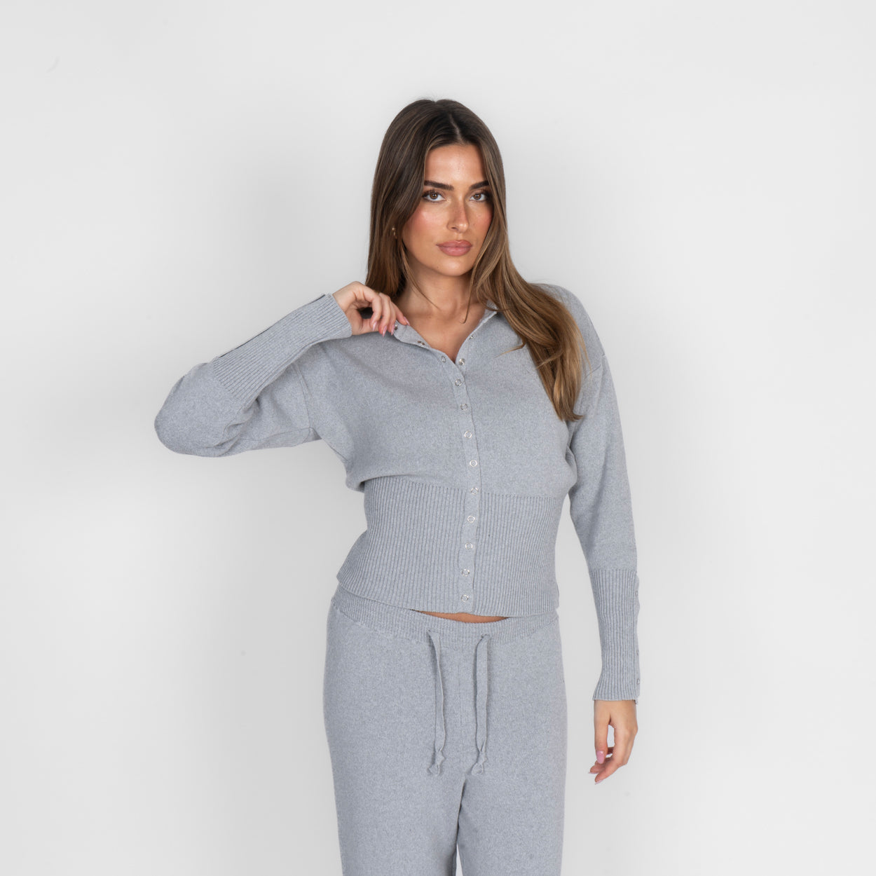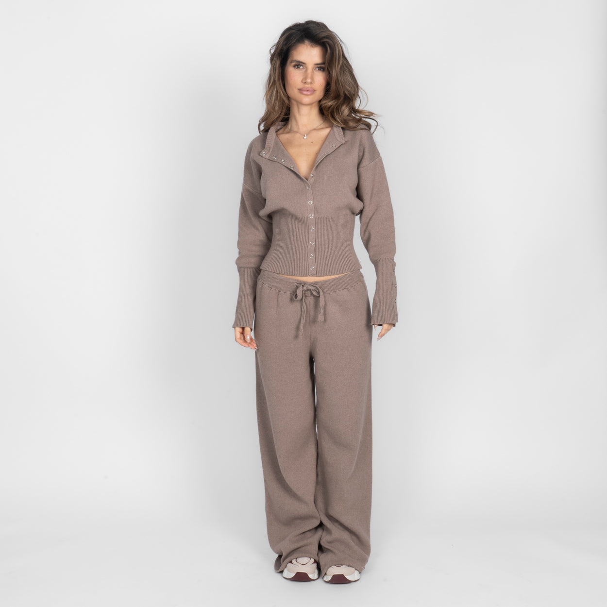 Unser Daily Button Zweiteiler verbindet Komfort mit einem modernen, lässigen Look. Das Set besteht aus einer Strickjacke mit Reißverschluss und einer passenden Hose, die durch ihren lockeren Schnitt besonders bequem sitzt. Der weiche Strick fühlt sich angenehm auf der Haut an und macht das Set zum perfekten Begleiter für entspannte Tage.