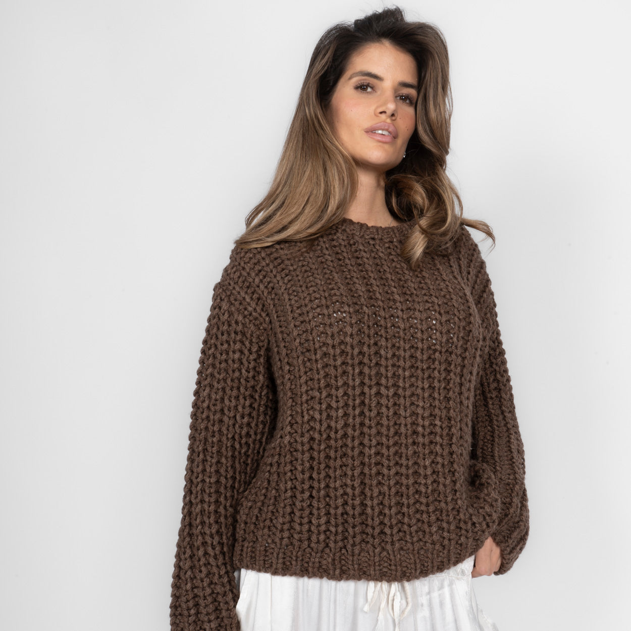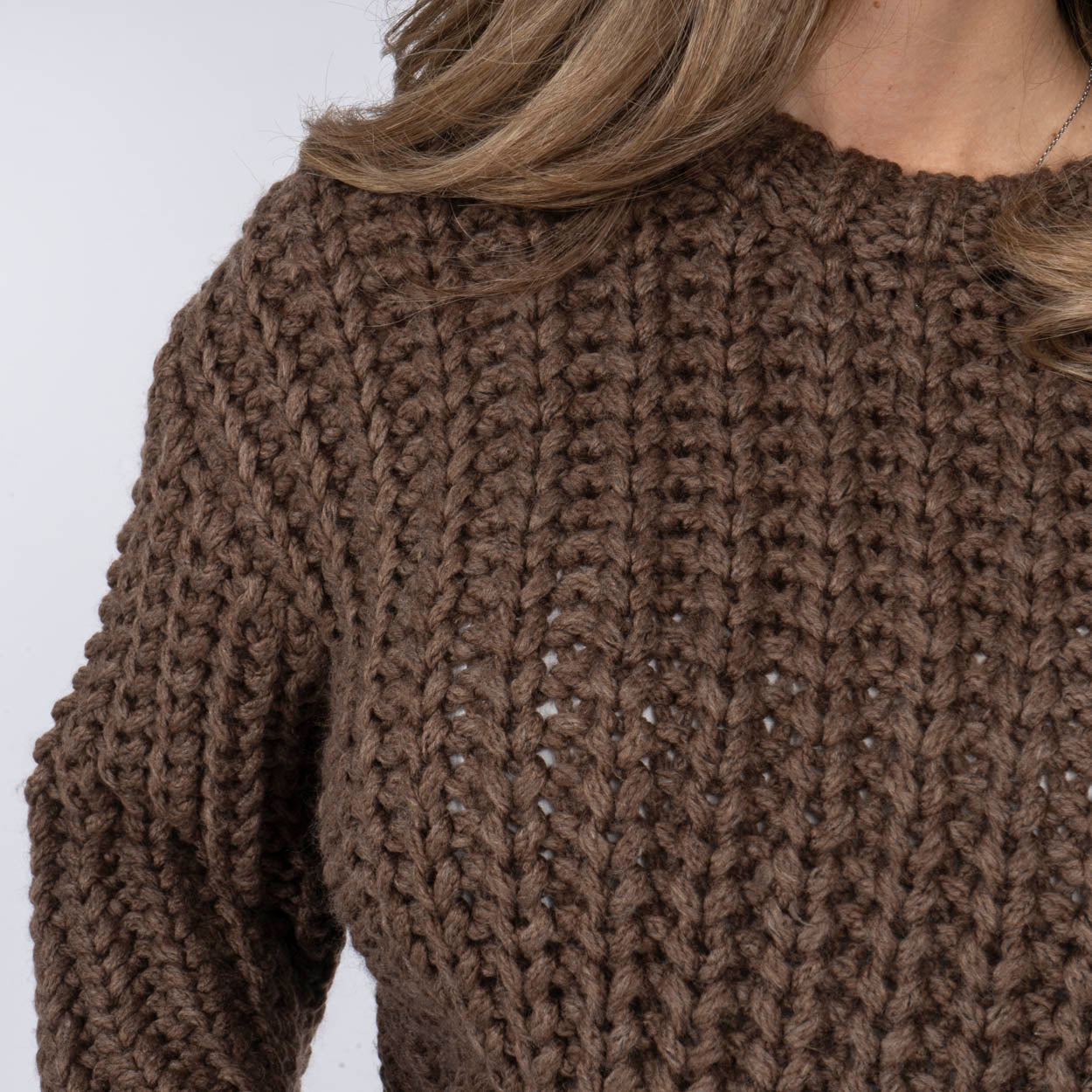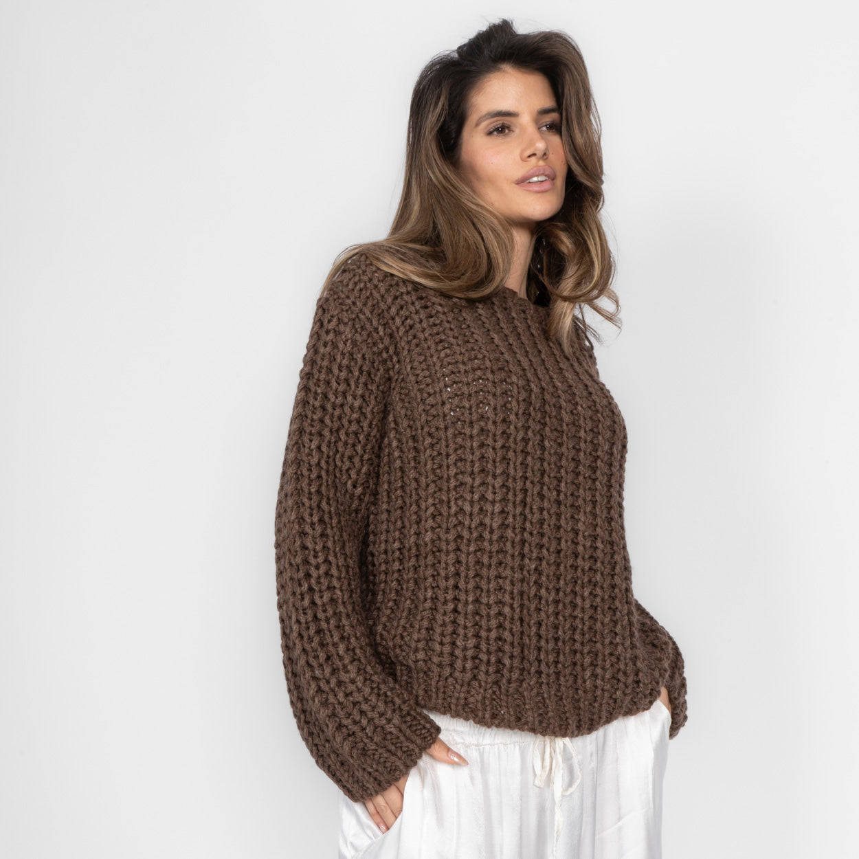 Durch den lockeren Schnitt und den leicht off-shoulder tragbaren Ausschnitt entsteht eine lässige, feminine Silhouette. Die weichen, voluminösen Ärmel unterstreichen den entspannten Charakter und sorgen für einen stilvollen Cozy-Look.