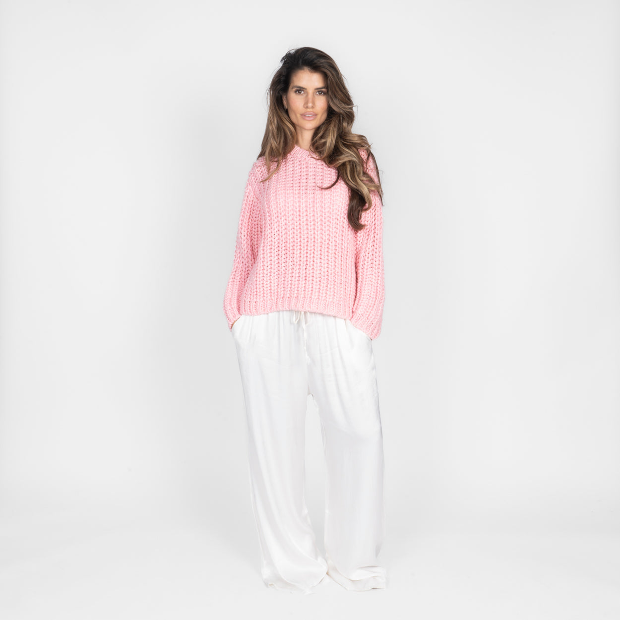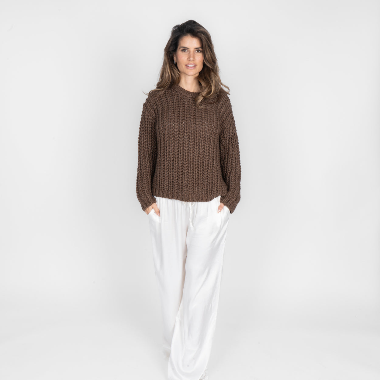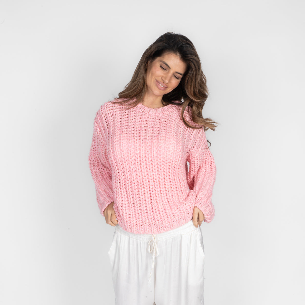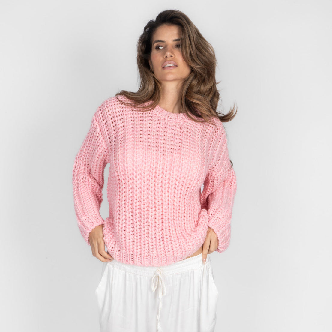 Durch den lockeren Schnitt und den leicht off-shoulder tragbaren Ausschnitt entsteht eine lässige, feminine Silhouette. Die weichen, voluminösen Ärmel unterstreichen den entspannten Charakter und sorgen für einen stilvollen Cozy-Look.