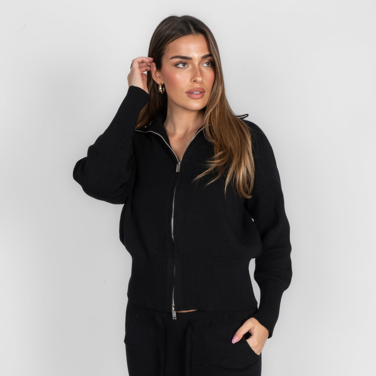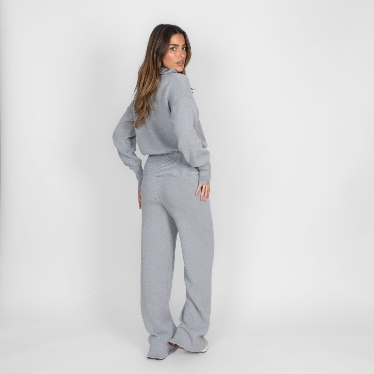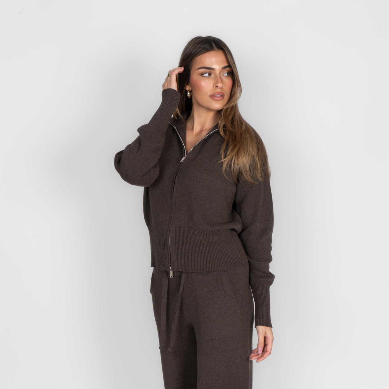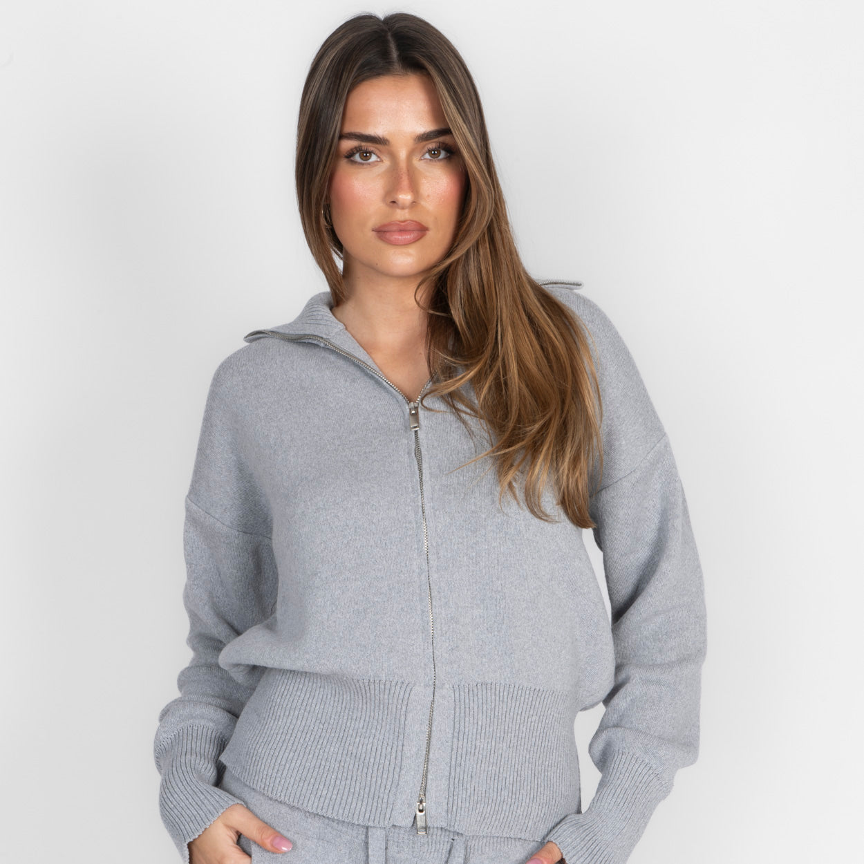 Unser Everyday Lounge Zweiteiler verbindet Komfort mit einem modernen, lässigen Look. Das Set besteht aus einer Strickjacke mit Reißverschluss und einer passenden Hose, die durch ihren lockeren Schnitt besonders bequem sitzt. Der weiche Strick fühlt sich angenehm auf der Haut an und macht das Set zum perfekten Begleiter für entspannte Tage.