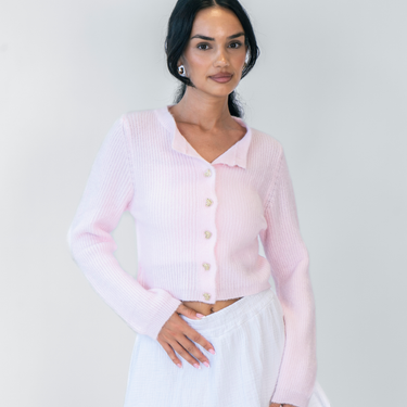 Der Heart Button Cardigan überzeugt mit einem figurbetonten Schnitt, weichem Rippstrick und einem besonderen Eyecatcher: funkelnden Knöpfen in Herzform, die dem Design einen romantischen Twist verleihen. Der Rundhalsausschnitt und die dezente Länge machen ihn zum perfekten Everyday-Piece – solo getragen oder offen kombiniert.