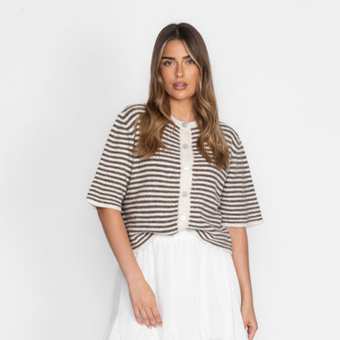 Ein Must-have für alle, die lässige Leichtigkeit mit stilvollem Strick kombinieren möchten: Unser Kurzarm-Strickcardigan mit Knopfleiste überzeugt durch seinen entspannten Boxy Fit, weichen Rippstrick und charmante Details. Die halblangen Ärmel und die dezente Cropped-Länge machen ihn zum perfekten Begleiter für warme Tage – ob offen über einem Top oder geschlossen als Statement-Piece getragen.