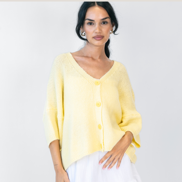 Dieser Strickcardigan begeistert mit seinem entspannten Oversized Fit und modernen 3/4-Ärmeln – perfekt für einen mühelos eleganten Look. Der weiche Strick umspielt deine Silhouette, während der V-Ausschnitt und die farblich abgestimmten Knöpfe für einen cleanen, zeitlosen Touch sorgen. Ideal für warme Tage, frische Sommerabende oder als Layering-Piece das ganze Jahr über.